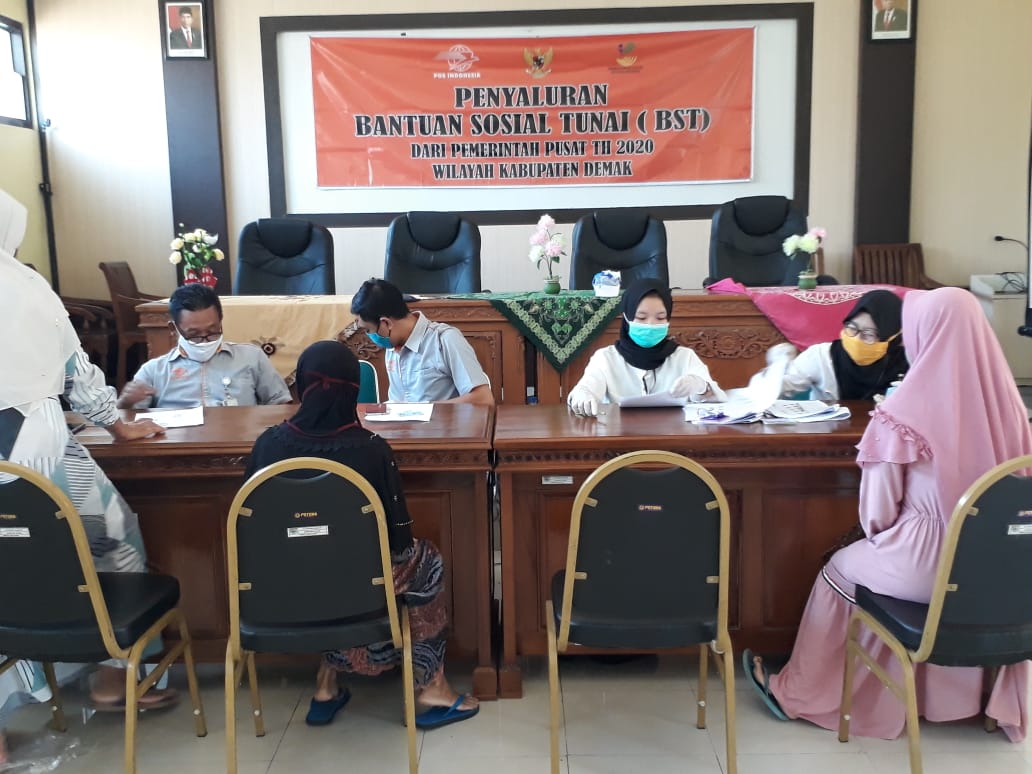 Pada hari Kamis, tanggal 09 Juli 2020 jam 08.00 bertempat di Ruang Pertemuan Kantor Kecamatan Wedung didakan Penyaluran Bantuan Sosial Tunai dari Kementrian Sosial lewat Kantor POS Kecamatan Wedung Tahap 2 bagi warga Kecamatan Wedung yang terdampak Cobvid 19, pada tahap 2 ini yg diundang hanya 6 desa yaitu, Wedung, Jungsemi, Kedungkarang, Kedungmutih, Jetak, Kendalasem, kegiatan ini dipimpin oleh Camat Wedung Mulyanto, AP,M.Si didampingi Forkopimcam Kecamatan Wedung dan diikuti oleh warga penerima BST Kemensos se Kecamatan Wedung. Adapun bentuk bantuan ini berupa uang tunai Rp.600.000 per Kepala Keluarga selama tiga bulan, semoga dengan bantuan ini warga yang terdampak bisa terbantu dan semoga Covid 19 ini bisa cepat hilang.