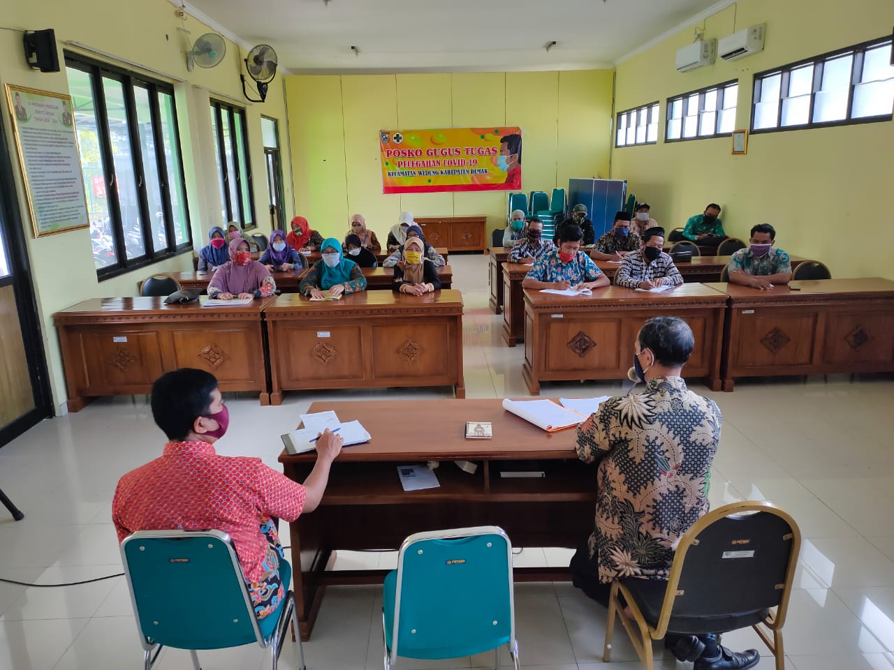 Wedung- Kamis, tanggal 16 Juli 2020 jam 08.00 bertempat di Ruang Pertemuan Kecamatan Wedun didakan Rapat Koordinasi rutin bendahara Desa se Kecamatan Wedung, kegiatan ini di pimpin oleh Camat Wedung Mulyanto,AP,M.Si didampingi Kasi Tata Pemerintahan Samawi,SIP,MH dan diikuti seluruh Bendahara Desa se Kecamatan Wedung, kegiatan ini rutin dilakukan setiap hari kamis setelah apel pagi, tujuan diadakan kegiatan ini adalah untuk mengevaluasi dan memberikan pengarahan dalam hal pengelolaan keuangan Desa, Sekcam Wedung Drs.Akhmad Suyud,MH mengatakan bahwa Bendahara Desa memegang peranan penting dalam pengelolaan Pemerintahan Desa karena kalau diDesa sistem pengelolaan keuanganya kacau maka otomaatis pemerintahanya akan kacau juga maka dari itu pengelolaanya harus sesuai dengan peraturan dan transparan.