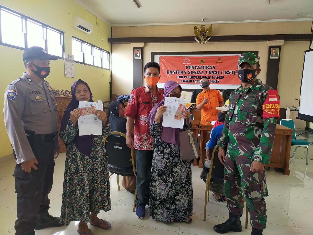 Pada hari Kamis, tanggal 22 Oktober 2020 jam 08.00 bertempat di Ruang Pertemuan Kantor Kecamatan Wedung didakan Penyaluran Bantuan Sosial Tunai dari Kementrian Sosial lewat Kantor POS Kecamatan Wedung Tahap 7 bagi warga Kecamatan Wedung yang terdampak Cobvid 19, pada tahap 7 ini yg diundang hanya 5 desa yaitu, Kenduren, Mandung, Mutih Kulon, Mutih Wetan, Ngawen, kegiatan ini dipimpin oleh Camat Wedung Mulyanto, AP,M.Si didampingi Forkopimcam Kecamatan Wedung dan diikuti oleh warga penerima BST Kemensos se Kecamatan Wedung. Adapun bentuk bantuan ini berupa uang tunai Rp.300.000 per Kepala Keluarga, semoga dengan bantuan ini warga yang terdampak bisa terbantu dan semoga Covid 19 ini bisa cepat hilang.
