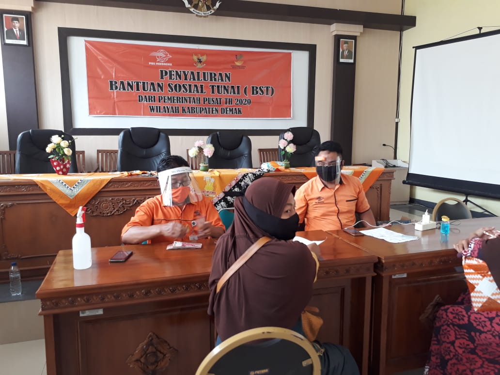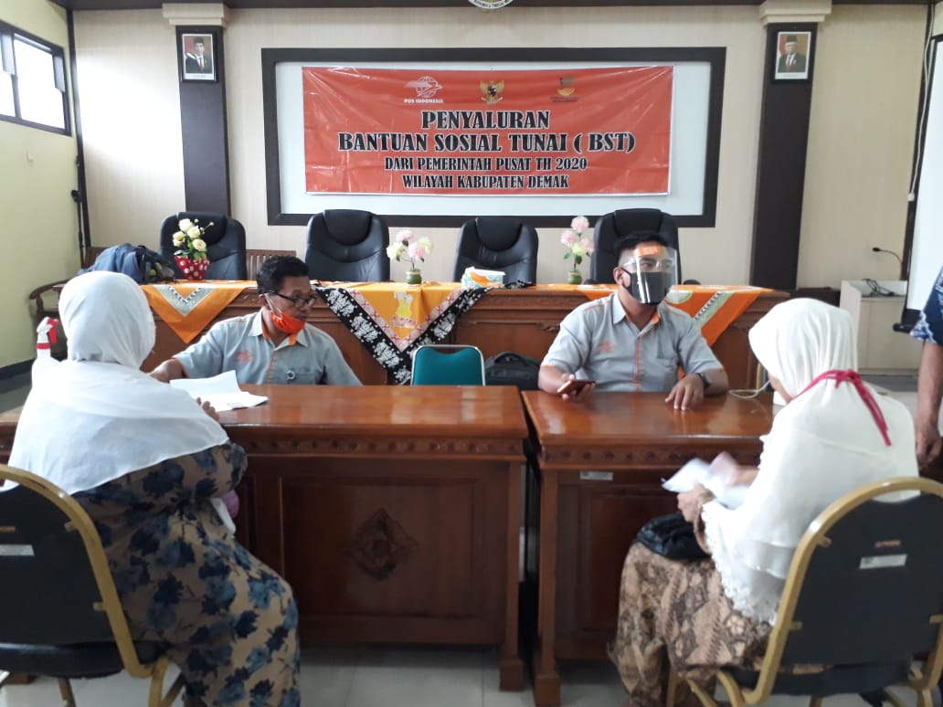Pada hari Selasa, tanggal 20 Oktober 2020 jam 08.00 bertempat di Ruang Pertemuan Kantor Kecamatan Wedung didakan Penyaluran Bantuan Sosial Tunai dari Kementrian Sosial lewat Kantor POS Kecamatan Wedung Tahap 7 bagi warga Kecamatan Wedung yang terdampak Cobvid 19, pada tahap 7 ini yg diundang hanya 5 desa yaitu, Babalan, Berahan Wetan, Berahan Kulon, Buko, Bungo, kegiatan ini dipimpin oleh Camat Wedung Mulyanto, AP,M.Si didampingi Forkopimcam Kecamatan Wedung dan diikuti oleh warga penerima BST Kemensos se Kecamatan Wedung. Adapun bentuk bantuan ini berupa uang tunai Rp.300.000 per Kepala Keluarga, semoga dengan bantuan ini warga yang terdampak bisa terbantu dan semoga Covid 19 ini bisa cepat hilang.