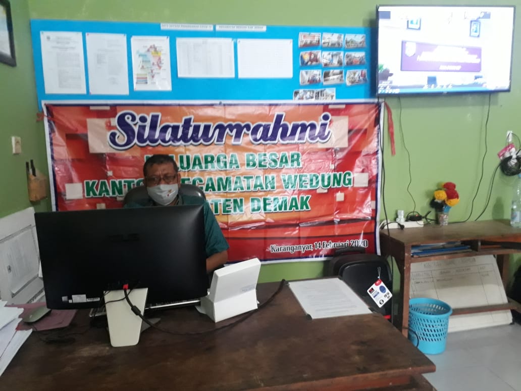 Wedung – Rabu, tanggal 21 Oktober 2020 jam 10.00 bertempat di Ruang Kerja Kantor Kecamatan Wedung didakan Pembinaan kepada warga yang akan mengajukan ijin pernikahan di wilayah Kecamatan Wedung, Kegiatan ini dilakukan untuk menekan penyebaran virus covid 19 yang ada di wilyah Kecamatan Wedung, yang salah satu kegiatanya adalah memberikan pembinaan atau sosialisasi tentang tata cara pernikahan yang sesuai protokol kesehatan covid 19, seperti mencuci tangan pakai sabun, memekai masker, menjaga jarak, dan maksimal orang yang datang 10 orang, semoga dengan diterapkanya protokoler kesehatan ini bisa menekan angka penyebaran virus covid 19.