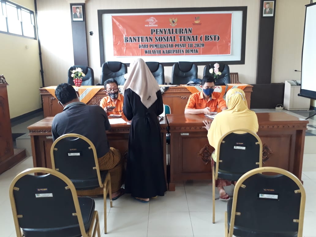 Pada hari Rabu, tanggal 25 November 2020 jam 08.00 bertempat di Ruang Pertemuan Kantor Kecamatan Wedung didakan Penyaluran Bantuan Sosial Tunai dari Kementrian Sosial lewat Kantor POS Kecamatan Wedung Tahap 9 bagi warga Kecamatan Wedung yang terdampak Cobvid 19, pada tahap 9 ini yg diundang hanya 5 desa yaitu, Jetak, Jungpasir, Jungsemi, Kedungkarang dan Kedungmutih kegiatan ini dipimpin oleh Camat Wedung Mulyanto, AP,M.Si didampingi Forkopimcam Kecamatan Wedung dan diikuti oleh warga penerima BST Kemensos se Kecamatan Wedung. Adapun bentuk bantuan ini berupa uang tunai Rp.300.000 per Kepala Keluarga, semoga dengan bantuan ini warga yang terdampak bisa terbantu dan semoga Covid 19 ini bisa cepat hilang.