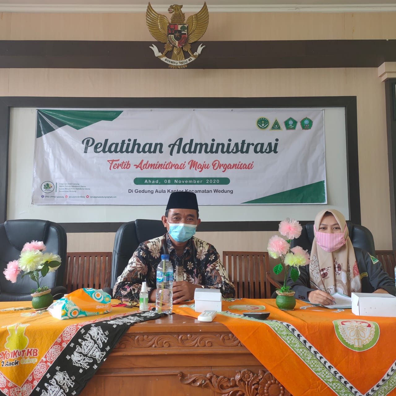 Wedung – Minggu, tanggal 08 November 2020 jam 08.00 bertempat di Ruang Pertemuan Kantor Kecamatan Wedung didakan Kegiatan Pelatihan Tertib Administrasi Maju Organisasi yang dilaksanakan oleh Organisasi NU Tingkat Kecamatan Wedung, yang dipimpin oleh Sekretaris Kecamatan Wedung Drs.Akhmad Suyud, MH dan diikuti oleh seluruh pengurus NU wilayah Kecamatan Wedung, Kegiatan ini bertujuan untuk melatih para pengurus dan anggota agar bisa lebih tertib lagi dalam administrasi organisasi.