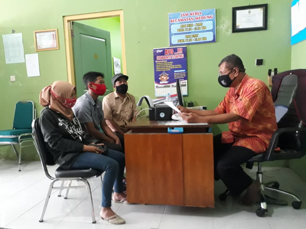 Wedung – Selasa, tanggal 22 Desember 2020 jam 09.00 bertempat di Ruang Kerja Kantor Kecamatan Wedung didakan Pembinaan kepada warga yang akan mengajukan ijin pernikahan di wilayah Kecamatan Wedung, Kegiatan ini dilakukan untuk menekan penyebaran virus covid 19 yang ada di wilyah Kecamatan Wedung, yang salah satu kegiatanya adalah memberikan pembinaan atau sosialisasi tentang tata cara pernikahan yang sesuai protokol kesehatan covid 19, seperti mencuci tangan pakai sabun, memekai masker, menjaga jarak, dan maksimal orang yang datang 10 orang, semoga dengan diterapkanya protokoler kesehatan ini bisa menekan angka penyebaran virus covid 19.