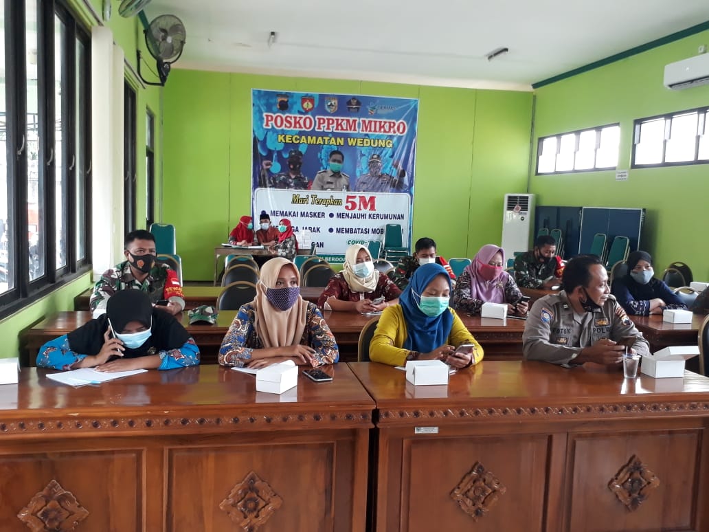 Wedung – Kamis, tanggal 4 Maret 2021 jam 08.00 bertempat di Ruang Pertemuan Kantor Kecamatan Wedung didakan Kegiatan Zoom Meting Workshop Tracer Covid 19 hari pertama yang diikuti oleh Babinsa, babhinkamtibmas, dan Kader Kesehatan Desa diwilayah Puskesmas Wedung 1 dan dinarasumberi langsung dari Bapelkes Semarang, tujuan dari worksop ini adalah untuk melatih para Babinsa, babhinkamtibmas, dan Kader Kesehatan Desa agar memiliki kemampuan Tracer atau melacak kejadian positif Covid 19 di Desa masing-masing sehingga tingkat penyebaran Covid 19 bisa diatasi dengan baik.