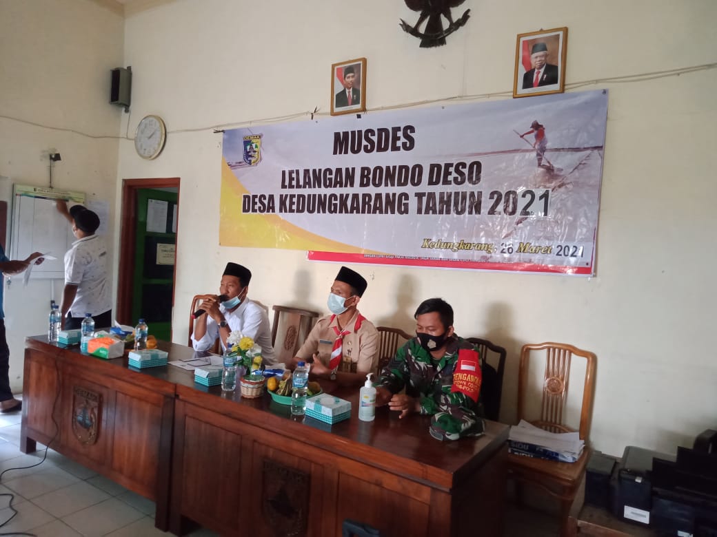 Wedung – Jumat, tanggal 26 Maret 2021 jam 13.00 bertempat di Ruang Pertemuan Desa Kedungkarang Kecamatan Wedung diadakan Lelang Bondo Desa Tedunan, kegiatan ini dihadiri langsung oleh Kasi Tata Pemerintahan Samawi, SIP,MH, Kapolsek dan Danramil Wedung beserta Kepala Desa Kedungkarang dan dihadiri para juru lelang warga Desa Kedungkarang, semoga lelang tahun ini hasilnya bisa meningkat dari tahun kemarin dan hasilnya bisa digunakan untuk kemakmuran Desa Kedungkarang.