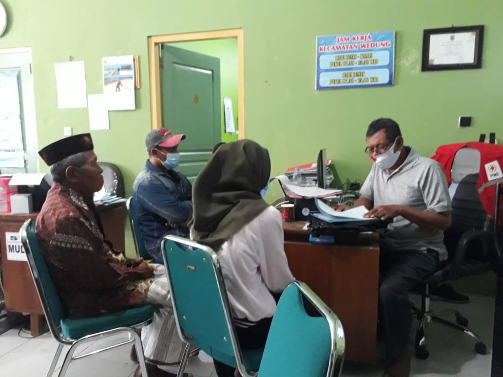Wedung – Jumat, tanggal 12 Maret 2021 jam 10.00 bertempat di Ruang Kerja Kantor Kecamatan Wedung didakan Pembinaan kepada warga yang akan mengajukan ijin pernikahan di wilayah Kecamatan Wedung, Kegiatan ini dilakukan untuk menekan penyebaran virus covid 19 yang ada di wilyah Kecamatan Wedung, yang salah satu kegiatanya adalah memberikan pembinaan atau sosialisasi tentang tata cara pernikahan yang sesuai protokol kesehatan covid 19, seperti mencuci tangan pakai sabun, memekai masker, menjaga jarak, dan maksimal orang yang datang 10 orang, semoga dengan diterapkanya protokoler kesehatan ini bisa menekan angka penyebaran virus covid 19.