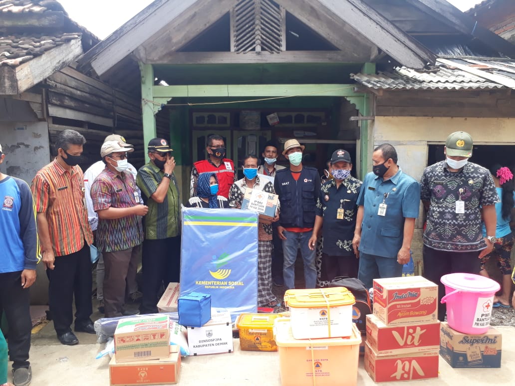 Wedung – Selasa , tanggal 09 Maret 2021 jam 10.00 bertempat di Desa Babalan RT 03 RW 07 Kecamatan Wedung, disalurkanya Bantuan Sembako dari Dinas Sosial P2PA, PMI, BPBD dan BAZNAS, bantuan ini ditujukan untuk Bapak Targhib korban rumah roboh yang diakibatkan angin puting beliung yang terjadi pada hari Minggu, 28 Februari 2021, yang mengakibatkan kerugian kurang lebih Rp.40.000.000, penyerahan bantuan ini dihadiri oleh Kasi Kesra Kecamatan Wedung, Babinsa, Babhinkaptibnas, Kepala Desa Babalan, TKTK Wedung dan anggota Tagana Desa Babalan. Sehingga dengan diberikanya bantuan Rumah Roboh ini bisa meringankan beban para korban.