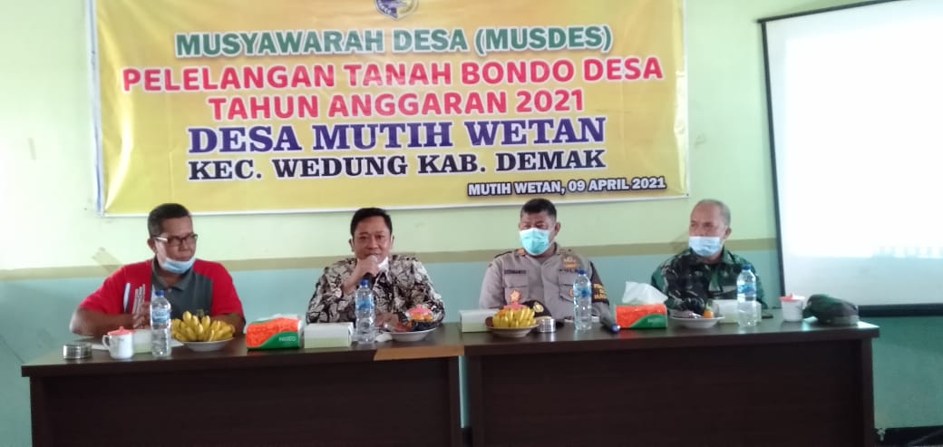 Wedung – Jumat, tanggal 09 April 2021 jam 13.00 bertempat di Ruang Pertemuan Desa Mutih Wetan Kecamatan Wedung diadakan Lelang Bondo Desa Mutih Wetan, kegiatan ini dihadiri langsung oleh Camat Wedung Mulyanto,AP,M.Si, serta di dampingi Kapolsek, Danramil Wedung , Kepala Desa Mutih Wetan dan dihadiri para juru lelang warga Desa Mutih Wetan, semoga lelang tahun ini hasilnya bisa meningkat dari tahun kemarin dan hasilnya bisa digunakan untuk kemakmuran Desa Mutih Wetan