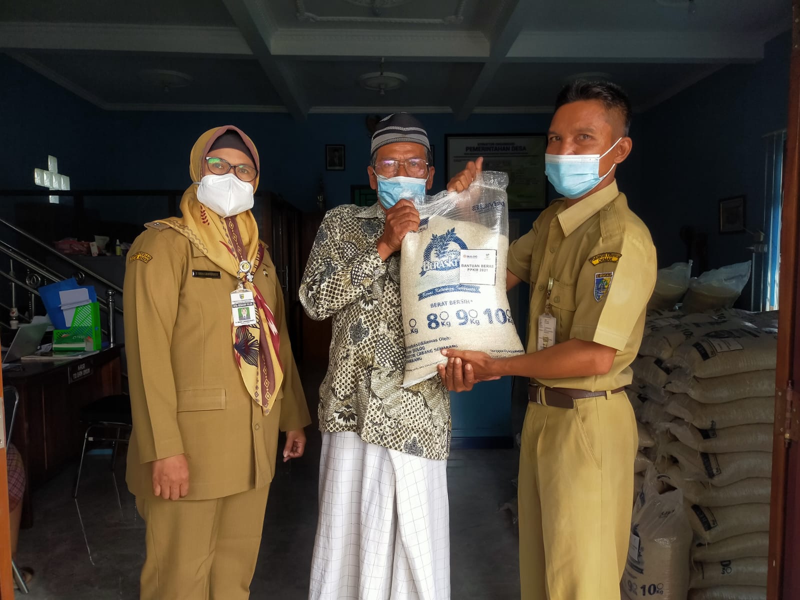 Wedung – Senin, tanggal 23 Agustus 2021 jam 09.00 bertempat di Balai Desa Berahan Kulon diadakan Penyaluran Bantuan Beras dari Dinas Sosial P2PA Kabupaten Demak, bantuan ini diserahkan langsung oleh Kepala Desa Berahan Kulon didampingi TKSK Kec Wedung kepada Keluarga Penerima Manfaat, untuk alokasi Desa Berahan Kulon mendapatkan Beras sejumlah 125 KPM, dan bantuan ini juga akan di berikan untuk desa-desa yang lain di wilayah Kecamatan Wedung, semoga dengan diberikanya bantuan beras ini bisa bermanfaat bagi warga khususnya untuk korban covid 19.