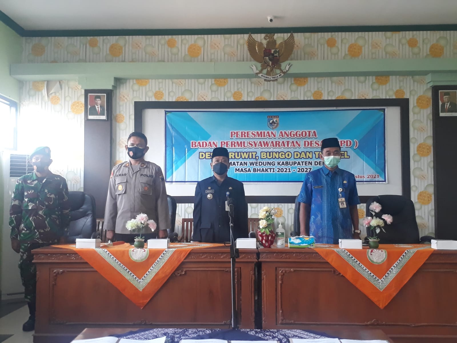 PERESMIAN ANGGOTA BADAN PERMUSYAWARATAN DESA (BPD) DESA RUWIT, BUNGO DAN TEMPEL KECAMATAN WEDUNG MASA BHAKTI 2021-2027