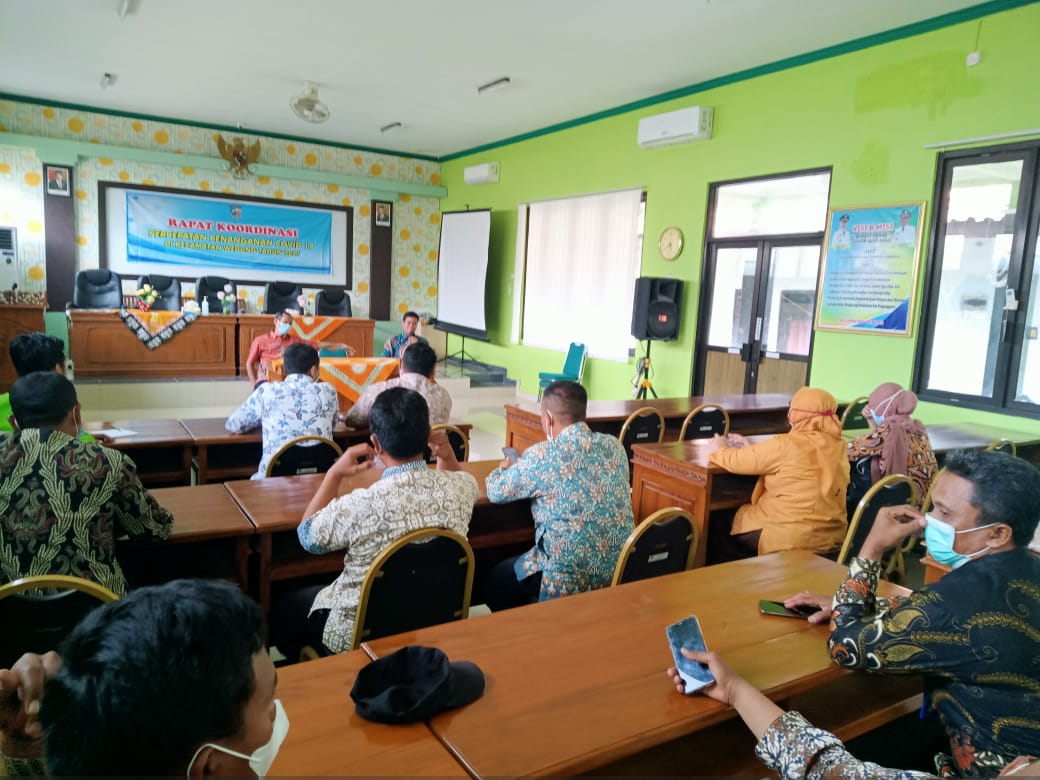 Wedung – Kamis, tanggal 07 Oktober 2021 jam 08.00 bertempat di Ruang Pertemuan Kecamatan Wedung didakan Rapat Koordinasi rutin Perangkat Desa se Kecamatan Wedung, kegiatan ini di pimpin oleh Sekcam Wedung Drs.Akhmad Suyud, MH didampingi Kasi Tata Pemerintahan Samawi,SIP,MH dan Kasi Pemberdayaan Masyarakat Suharto, SE, MAP serta diikuti seluruh Perangkat Desa se Kecamatan Wedung, kegiatan ini rutin dilakukan setiap hari Rabu setelah apel pagi, tujuan diadakan kegiatan ini adalah untuk mengevaluasi dan memberikan pengarahan dalam hal pengelolaan Desa, Sekcam Wedung mengingatkan kembali tentang Pembayaran PBB di tahun 2021 harus segera di kebut karena setiap bulan dipantau oleh Bapak Sekretaris Daerah Kabupaten Demak jangan sampai Kecamatan Wedung progresnya berada dibawah dibandingkan Kecamatan yang lain.