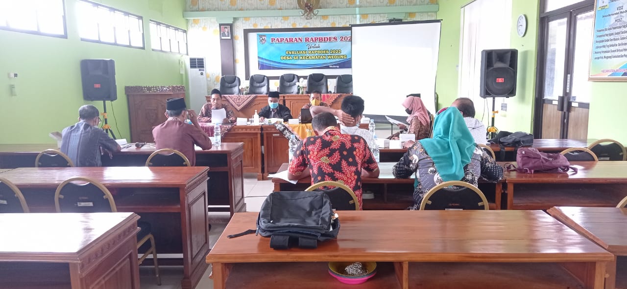 Wedung – Selasa, tanggal 16 November 2021 jam 09.00 bertempat di Ruang Pertemuan Kantor Kecamatan Wedung didakan Kegiatan Paparan Evaluasi RAPBDES Tahun 2022 yang dilaksanakan oleh Pemerintah Kantor Kecamatan Wedung dalam hal ini Bapak Camat Wedung, Sekretaris Kecamatan Wedung, Kasi Tapem dan Kasi Permas Kantor Kecamatan Wedung yang diikuti oleh Pemerintah Desa Jetak, kegiatan ini dilakukan rutin setiap akhir tahun untuk mengetahui rencana anggaran desa untuk tahun 2022 di tiap desa dan Camat Wedung bisa mengevaluasi rencana anggaran tersebut sehingga bisa bermanfaat bagi masyarakat.