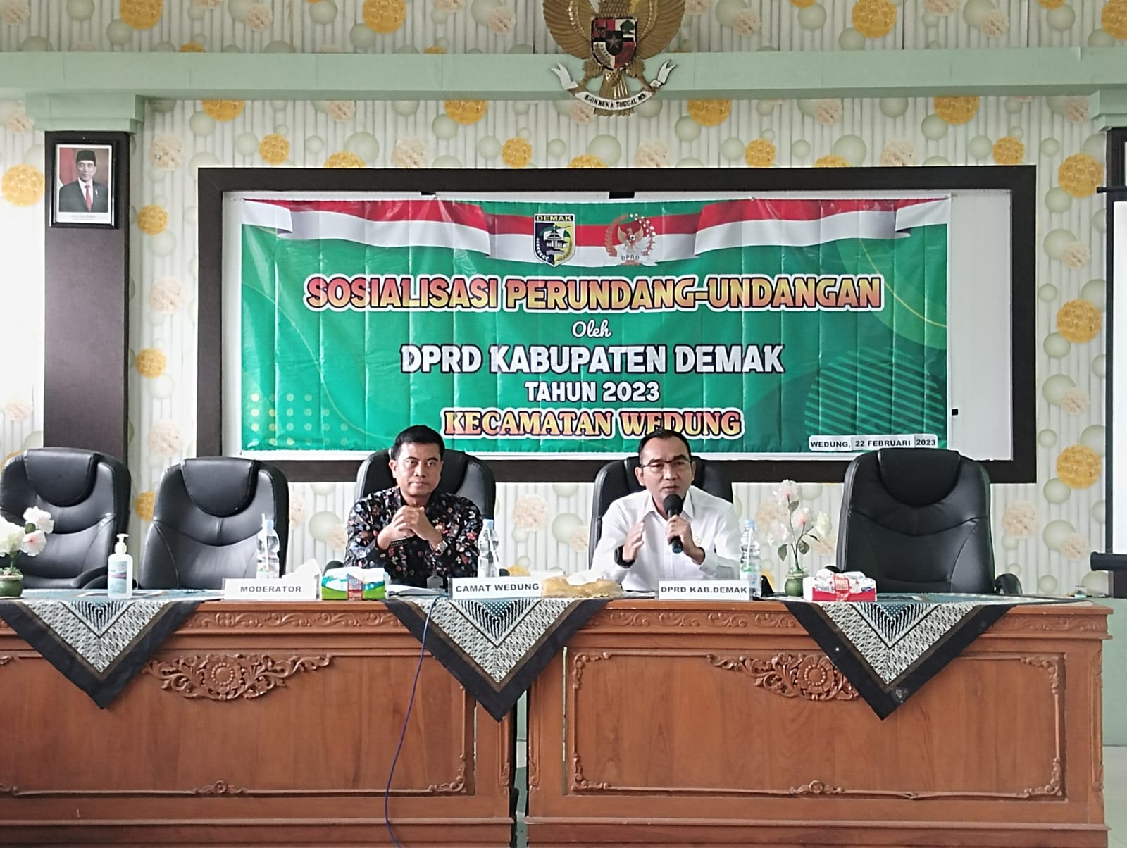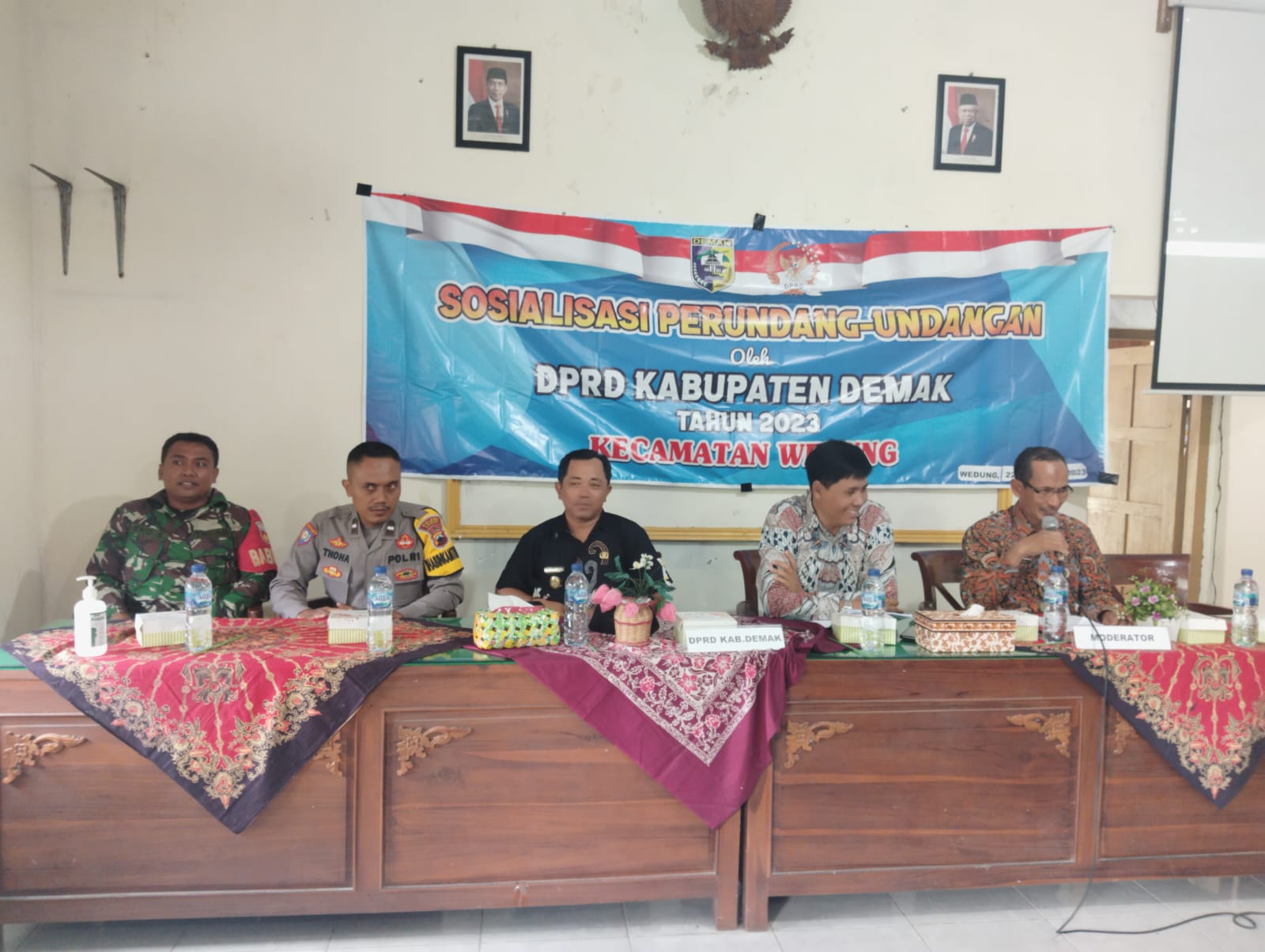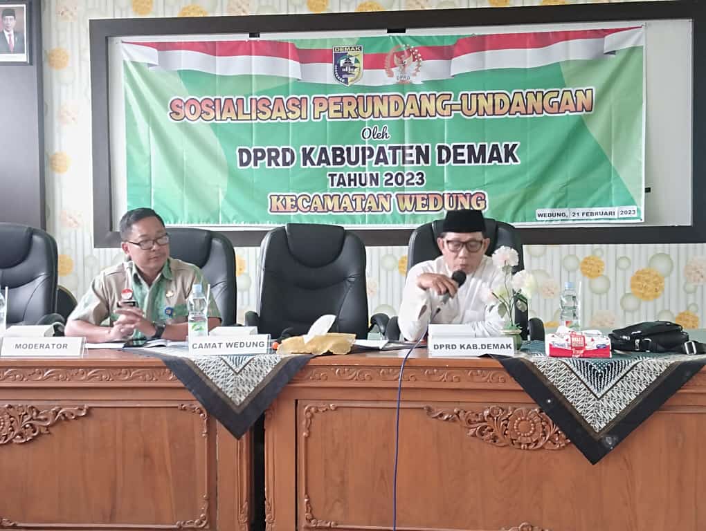 Wedung – Rabu tanggal 22 Februari 2023 jam 13.00 yang kali ini berbeda dari anggota DPRD yang lainya diadakan di Ruang Pertemuan Kantor Kecamatan Wedung kali ini bertempat di Balai Desa Mutih Kulon Kecamatan Wedung, Bapak Fatkhan mengatakan tujuanya yaitu untuk memudahkan peserta yang rumahnya jauh dari kantor Kecamatan Wedung agar lebih dekat apalagi sekarang masih musim penghujan, kegiatan Sosialisasi Peraturan Perundang-Undangan yang dilaksanakan ini difasilitasi oleh Kantor Kecamatan Wedung bekerja sama dengan Pemerintah Desa Mutih Kulon dan diikuti oleh Kepala Desa Mutih Kulon Kec. Wedung, Babinsa, Bhabinkamtibmas Desa dan Bapak Kasi Tapem Kecamatan Wedung Bapak Samawi, SIP, MH sekaligus sebagai Moderator, Kegiatan kali ini diikuti oleh kurang lebih 55 peserta dari perwakilan masyarakat Desa se Kecamatan Wedung, tujuan diadakanya kegiatan ini adalah untuk memberikan Sosialisasi kepada Masyarakat tentang Peraturan Daerah kabupaten Demak Nomor 02 Tahun 2021 tentang Bantuan Hukum bagi Masyarakat Miskin, Bapak Fatkhan mengatakan sosialisasi tentang bantuan hukum bagi masyarakat miskin sangatlah penting karena selama ini banyak warga masyarakat yang tidak tau bagaimana prosedur dan tata cara melapor kalau ada masalah hukum, sehingga malah dimanfaatkan oleh oknum-oknum tertentu tentunya dengan biaya yang tidak sedikit, bukanya membantu malah menambah beban masyarakat, Bapak Fatkhan berharap dengan diadakanya Sosialisasi ini masyarakat lebih tau tentang tata cara melapor dan dimana tempatnya kalau mau meminta bantuan hukum sehingga bisa membantu masyarakat miskin.
