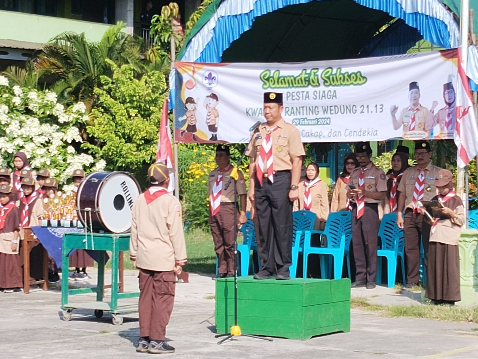WEDUNG – Kamis, 29 Februari 2024 Bapak Camat Wedung Mulyanto, AP,M.Si menjadi Pembina Upacara dalam acara pembukaan Pesta Siaga Kwartir Ranting Wedung 21.13 di MTs Raudlatul Muallimin Kecamatan Wedung, kegiatan ini diikuti oleh anak-anak SD se Kecamatan Wedung turut hadir pula Perwakilan dari Polsek dan Koramil dan para pengurus Pramuka Kwartir Ranting Wedung.