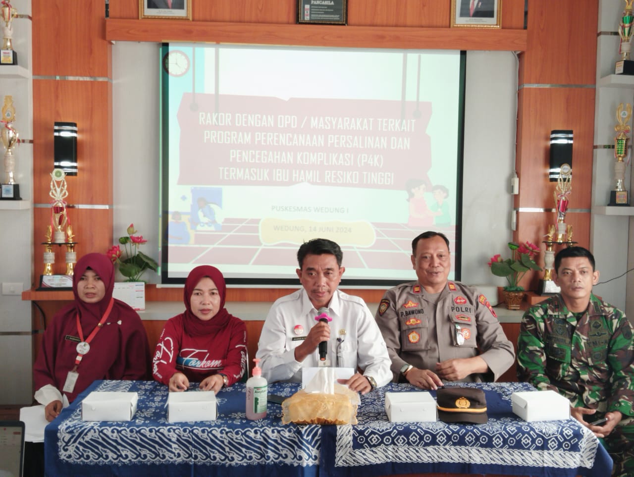 WEDUNG – Jumat, 14 Juni 2024, Puskesmas Wedung 1 mengadakan Rakor Program Perencanaan Persalinan dan Pencegahan Komplikasi (P4K) di Ruang Pertemuan Puskesmas Wedung 1, kegiatan ini dihadiri oleh Bapak Sekcam Wedung Drs. Akhmad Suyud, MH didampingi Kapolsek, Danramil, dan Kepala Puskesmas Wedung 1, serta diikuti oleh Kepala Desa Wilayah Puskesmas Wedung 1, Babinsa, Bhabinkamtibmas, dan Kader Kesehatan Desa Wilayah Puskesmas Wedung 1, dalam kegiatan kali ini turut serta mengundang narasumber dari Dinas Kesehatan Daerah Kabupaten Demak.